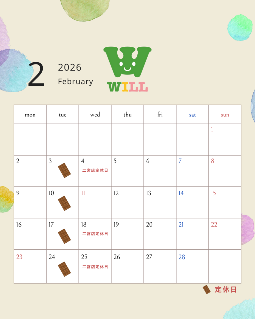 二宮店は水曜日もお休みとなります。